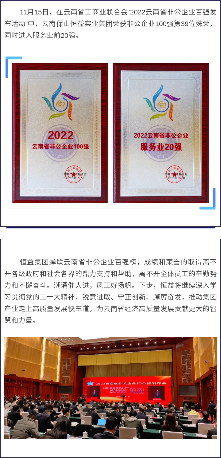 恒益集团由1996年成立的腾冲县恒益综合经营部发展而来,目前拥有总资产近75亿元,年营业额60多亿元。自成立以来累计纳税超46亿元,常年在职员工2000余人,带动就业20000多人,各项社会公益捐款计近2亿元。